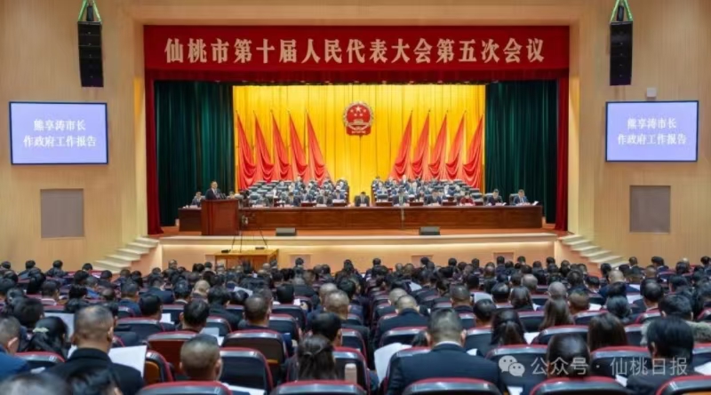 本次大会应到代表436人,实到421人,符合法定人数。上午九时,余文华宣布大会开幕,全体起立,奏唱国歌。熊享涛代表市政府向大会作工作报告。报告共分三个部分:一、2024年工作回顾;二、2025年政府工作安排;三、全面加强政府自身建设。熊享涛说,2024年是仙桃爬坡过坎、克难奋进、向难求成的一年。这一年,我们以流域综合治理为基础,统筹高水平保护和高质量发展,水乡田园的图景更美;这一年,我们以供应链体系建设为抓手,构建现代化产业体系,县域百强的质效更优;这一年,我们以城镇和产业“双集中”发展为切入点,推动新型城镇化,试点示范的步伐更实;这一年,我们以信息化为突破口,赋能四化同步发展,数字仙桃的底座更稳;这一年,我们以美好环境与幸福生活共同缔造为载体,推进社会治理体系和治理能力现代化,共同富裕的基础更牢;这一年,我们以党纪学习教育为重点,强化政府自身建设,勤廉务实的氛围更浓。这些成绩的取得,是习近平总书记作为党中央的核心、全党的核心掌舵领航的结果,是习近平新时代中国特色社会主义思想科学指引的结果,是省委、省政府和市委坚强领导的结果,是市人大、市政协鼎力支持的结果,是全市上下精诚协作、团结奋斗的结果。我们同时也要清醒地看到,当前经济社会发展还面临一些困难和问题,要高度重视,采取有力措施,认真加以解决。